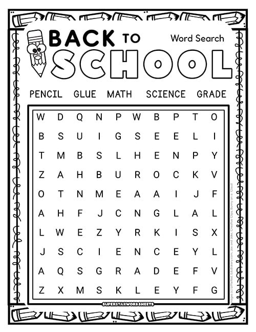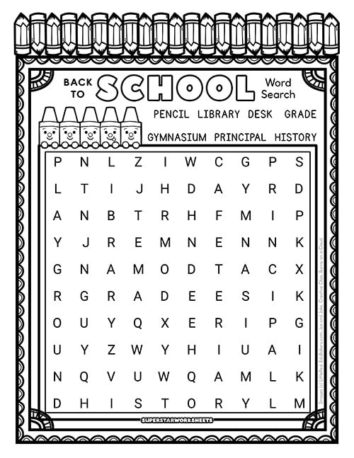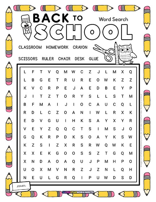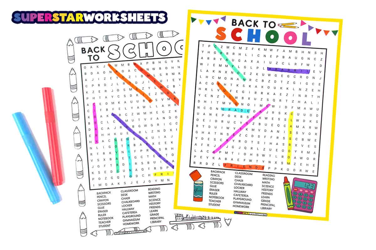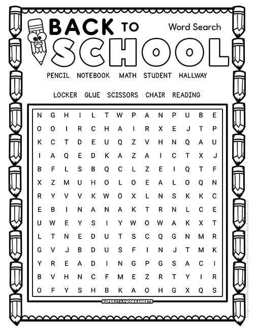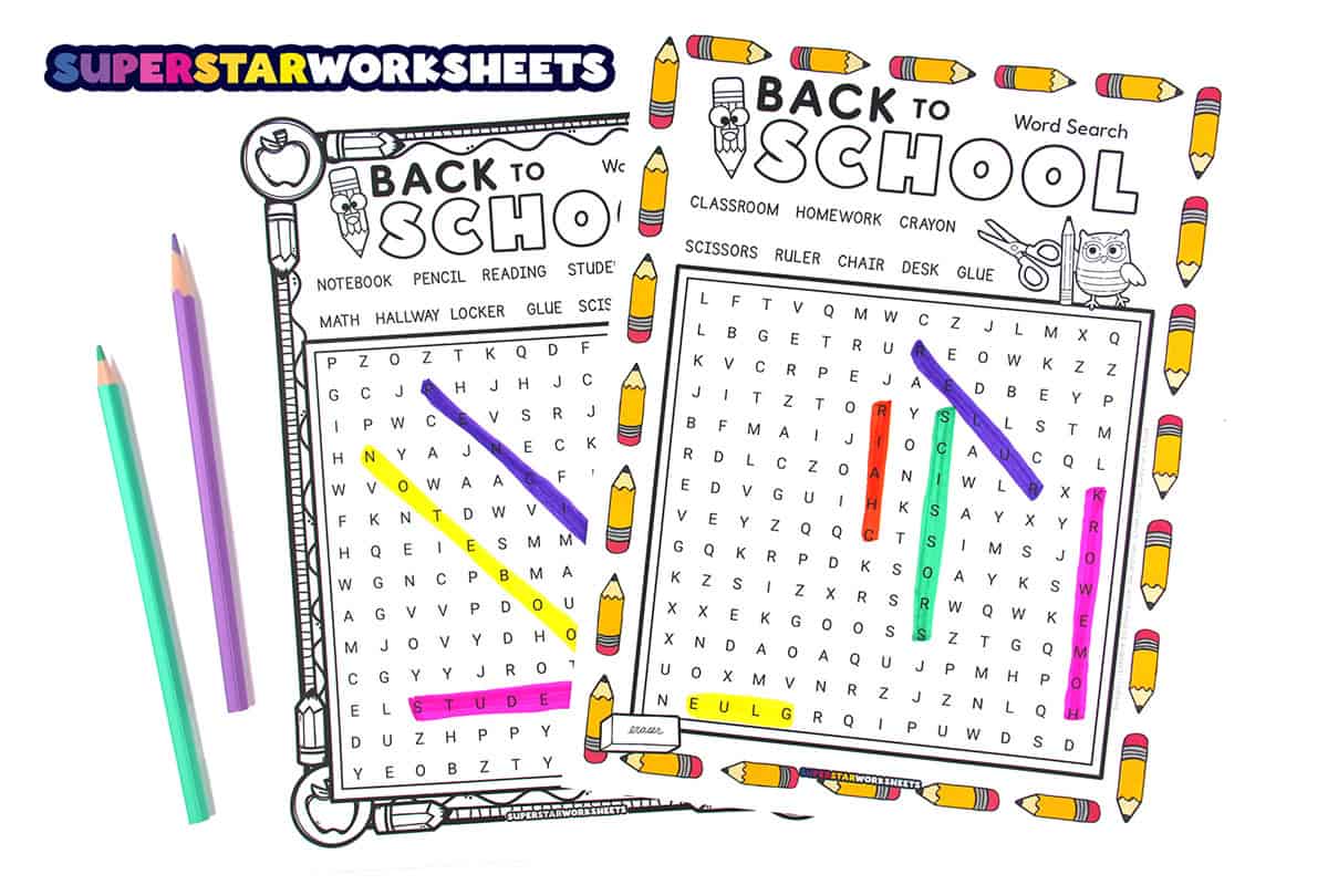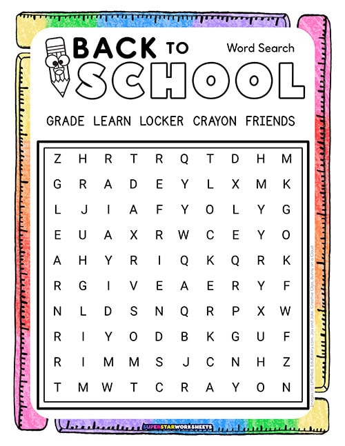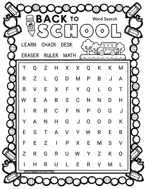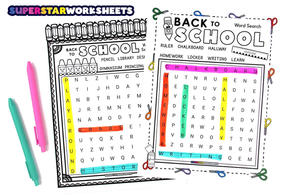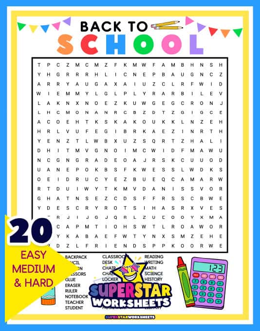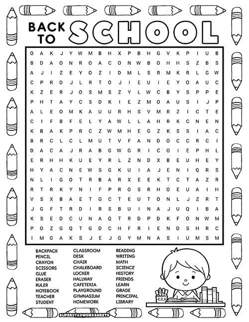 Word searches are an excellent way to boost vocabulary skills. Students will be given a new set of vocab words to find for each of these back to school themed printables. These word puzzles can cater to kindergarten, 1st grade, 2nd grade, and 3rd grade. Be sure to grab our free, printable First Day Of School Signs to help make back to school fun!