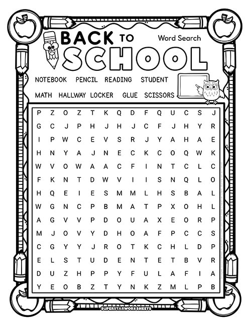 This free back to school word search printable features 30 words to seek and find. Featuring cute school-themed designs, this PDF back to school word search is perfect for kids, teens, and adults. Includes answer key.