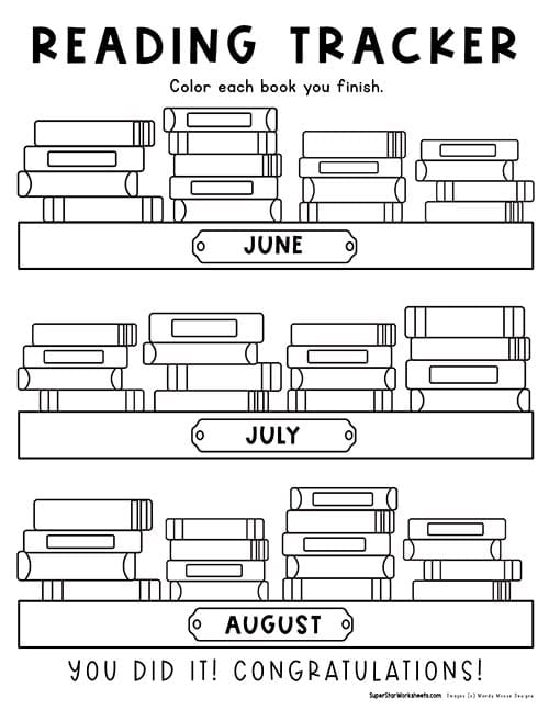 This free summer reading log adds “date started” and “date completed” fields for kids who tackle longer chapter books over several days or weeks. Helpful for tracking reading stamina and pacing throughout the summer. For more free summer printables, take a look at our August Coloring Pages today!