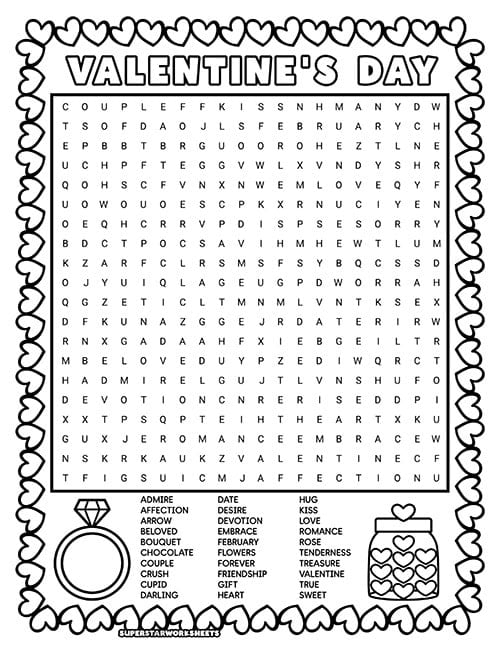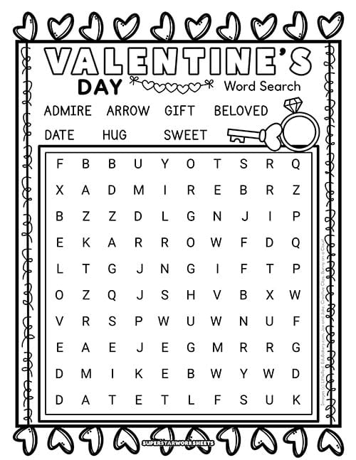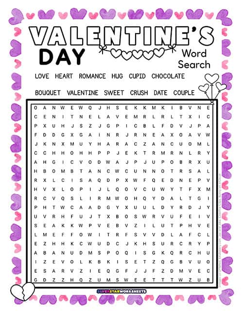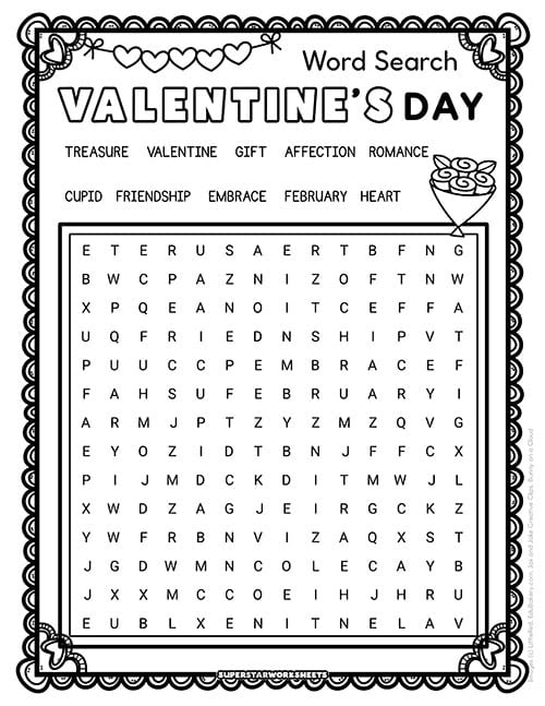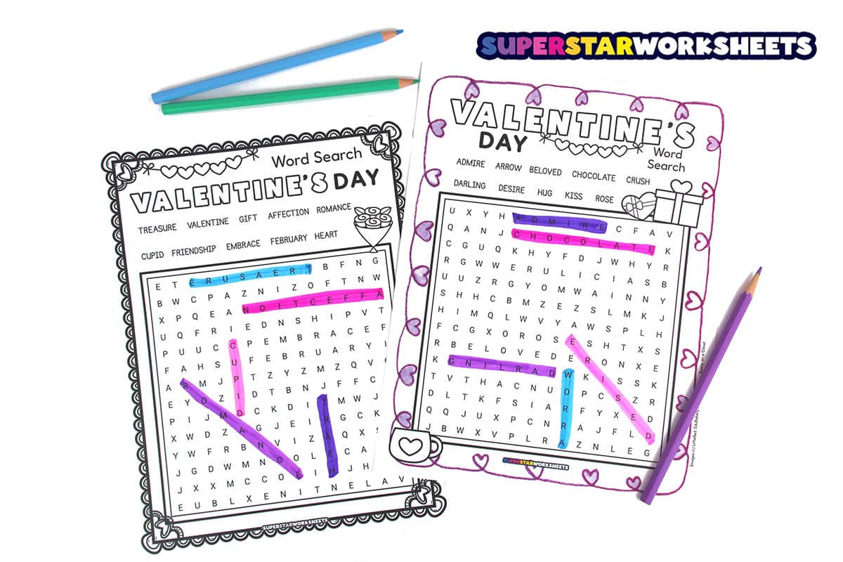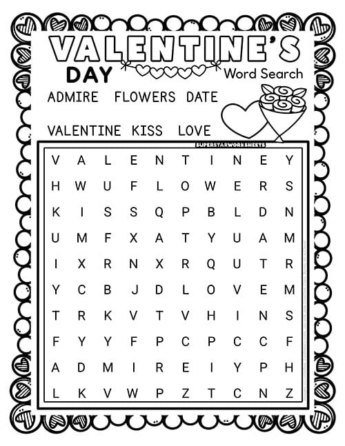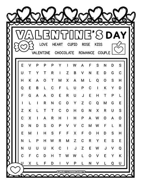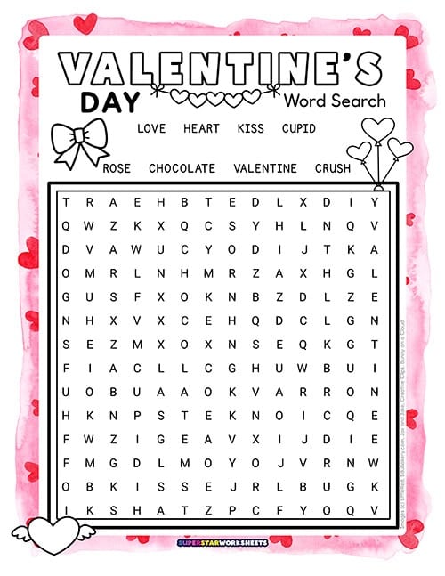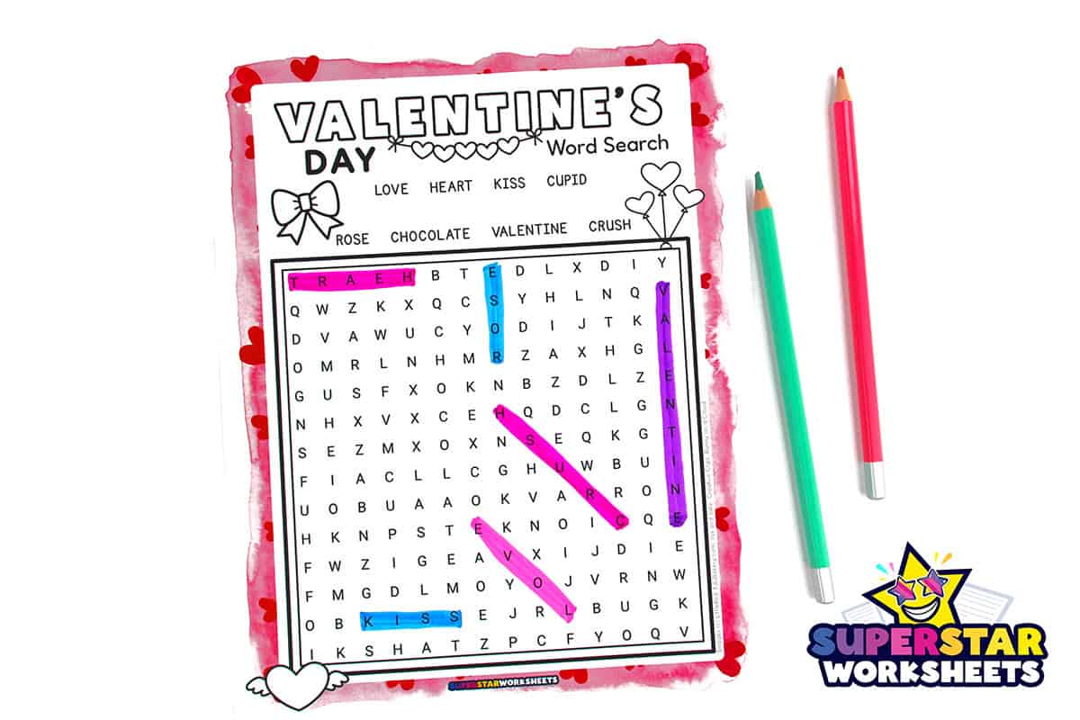 Create friendly competitions with this Valentine’s Day word search printable by timing students to see who finishes first. Our Valentine’s Day word search works perfectly for partner races or small group challenges during February classroom activities. Try our FREE Valentine’s Day Worksheets today!