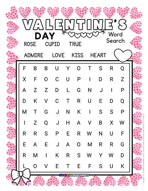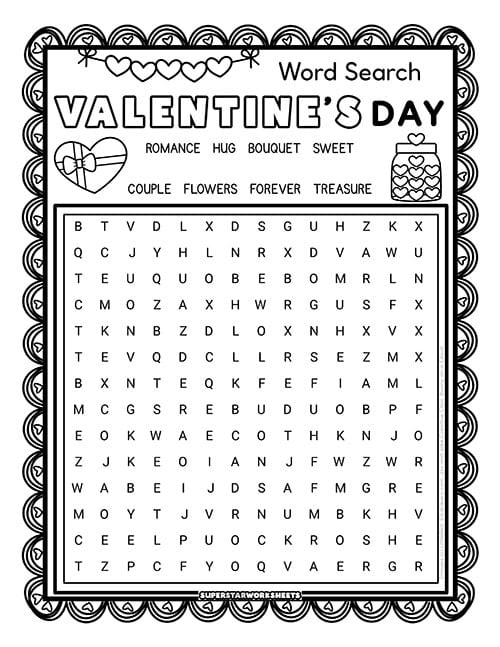 Pair this Valentine’s Day word search printable with read-alouds about love and friendship for a complete February-themed lesson. Our Valentine’s Day word search reinforces seasonal vocabulary while students practice problem-solving and pattern recognition skills.