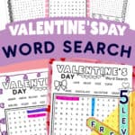 Teachers! You will love this valentines day word search printable for substitute plans, indoor recess activities, or take-home February homework packets. Parents, our free printable Valentine’s Day word search are great to use during homeschooling.