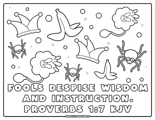 Free Bible verse coloring pages are a great way for students to memorize Bible passages and the picture will help the visual association. KJV Reference: Proverbs 1:7 – “The fear of the LORD is the beginning of knowledge: buth …fools despise wisdom and instruction. Proverbs 1:7 KJV”
