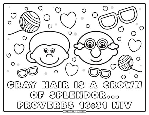 Bible verse coloring pages for preschoolers can be found here! Give young children fun Bible coloring worksheets. “Gray hair is a crown of splendor… Proverbs 16:31 NIV; it is attained in the way of righteousness.”