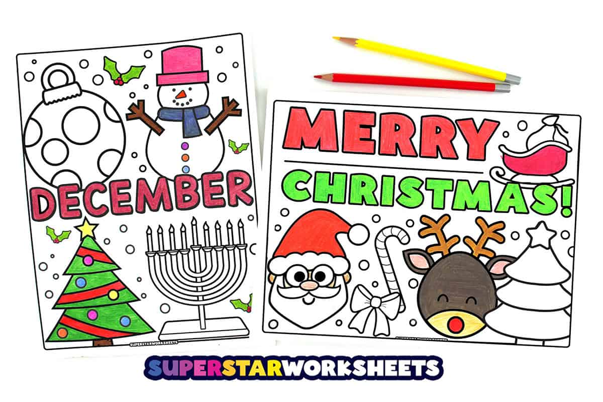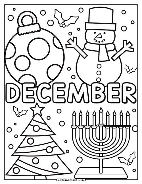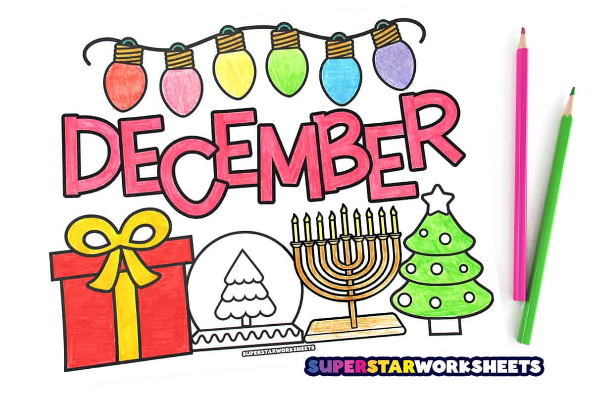 Free printable December Coloring Pages! These December Coloring Pages printable PDF sheets will help your students engage in learning during this winter holiday season. Students will improve fine motor control and creativity by using these coloring pages for December. Your kids will love these December color pages featuring winter and holiday themes, and the best part is that they’re easy to download and print!