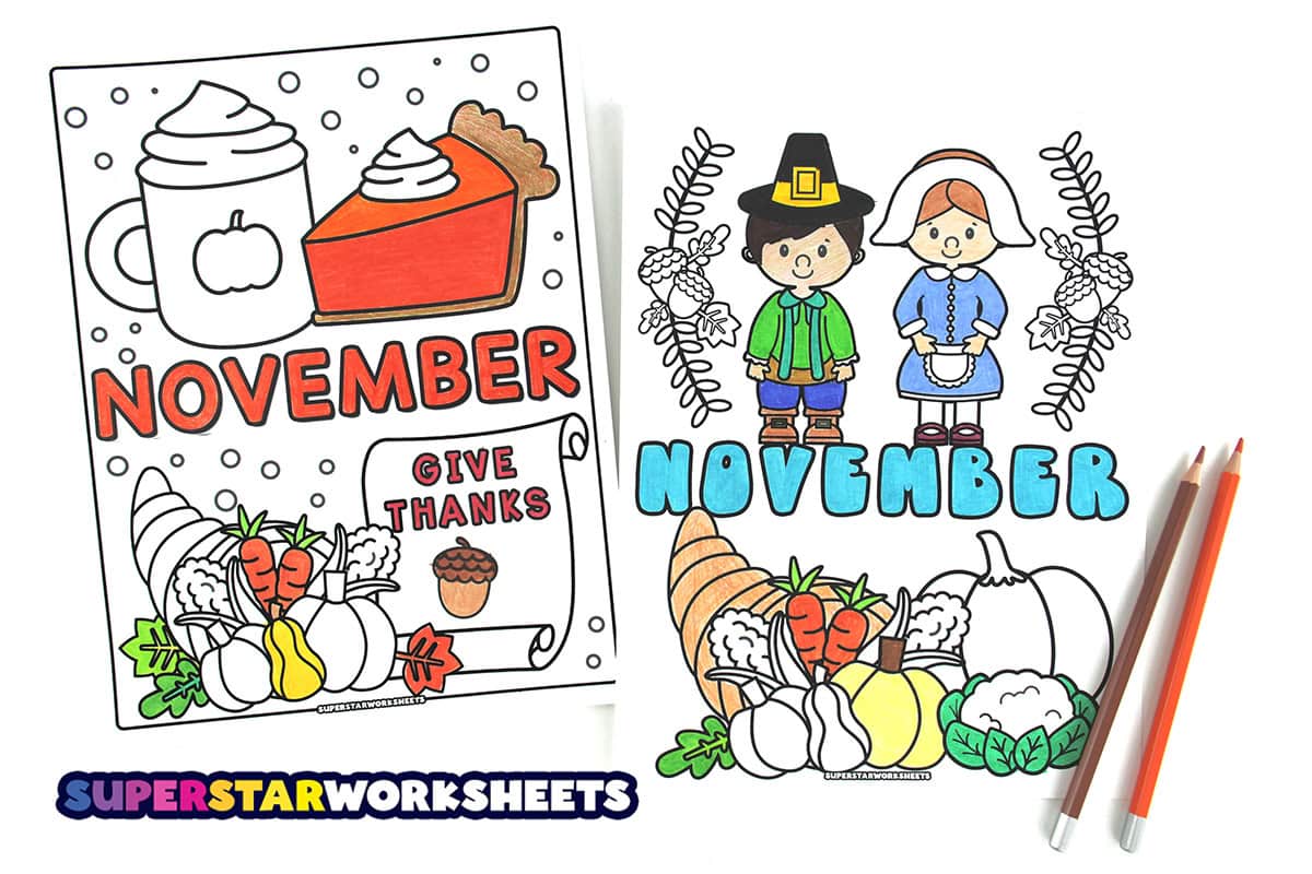 November Coloring Pages are engaging activities to keep your elementary students focused throughout the fall season. These November coloring pages, available in PDF format, are ideal for young learners from preschool through elementary grades. These downloadable and printable sheets enhance fine motor development and spark artistic imagination. The calendar-themed designs are Thanksgiving inspired and will captivate your students while providing educational value.