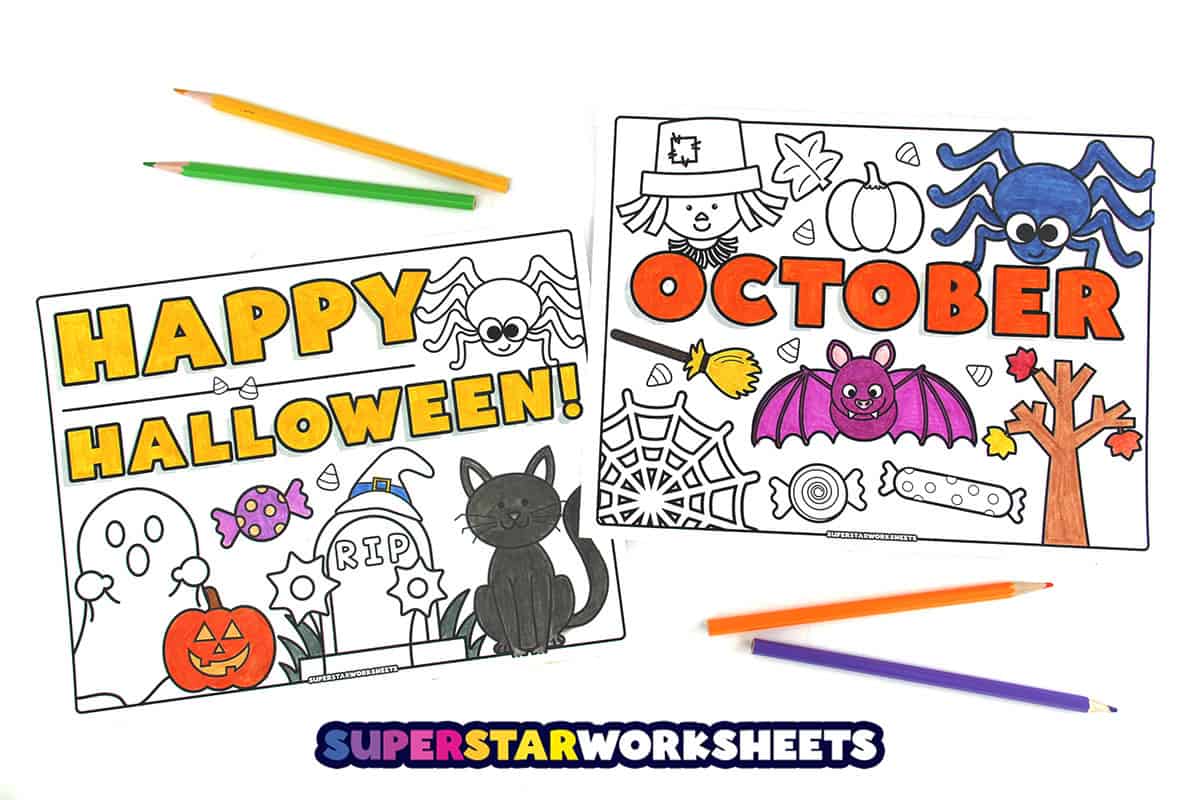 Grab your spookiest colors (colored pencils, crayons, or markers) and let’s get coloring! Just download and print one (or all) of these October coloring printables and celebrate Halloween with your students. Find fun Halloween Color By Number printables to go with this set.