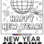This new year coloring pages 2025 design features a disco ball, banners, confetti, streamers, and “Happy New Year!” text. The New Year’s coloring pages 2025 option gives students a fun break from regular school work while still keeping them busy and focused on the new year.