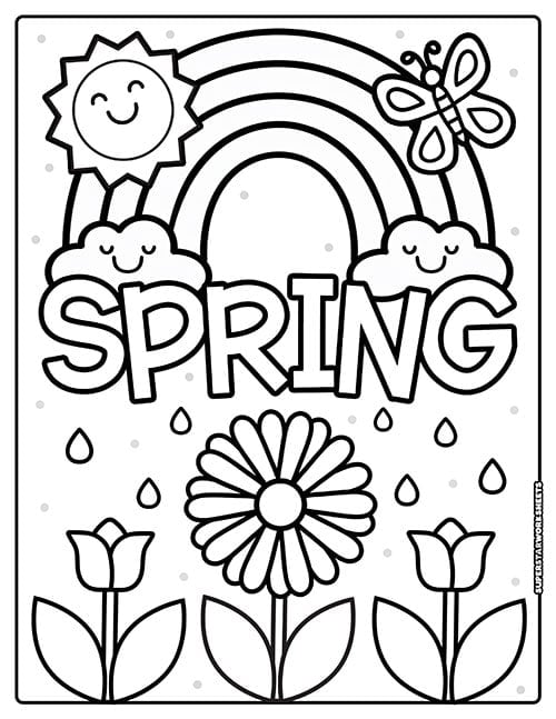 Free printable Spring Coloring Pages! Download and print cute PDF coloring sheets filled with your favorite springtime themes. Rainbows, butterflies, spring flowers, bugs, bunnies, birds and bees fill these simple and easy Spring printables for March, April, and may activities.