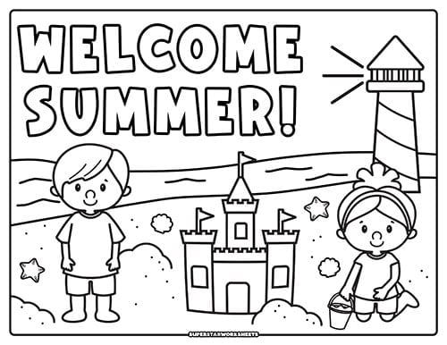 Kids love coloring beach scenes with lighthouses and sandcastles in these coloring pages summer! Use this summer coloring page as a fun welcome activity when summer break starts or as summer coloring pages printable décor for your classroom door. Looking for more FREE printable summer activities? Check out our Summer Templates!