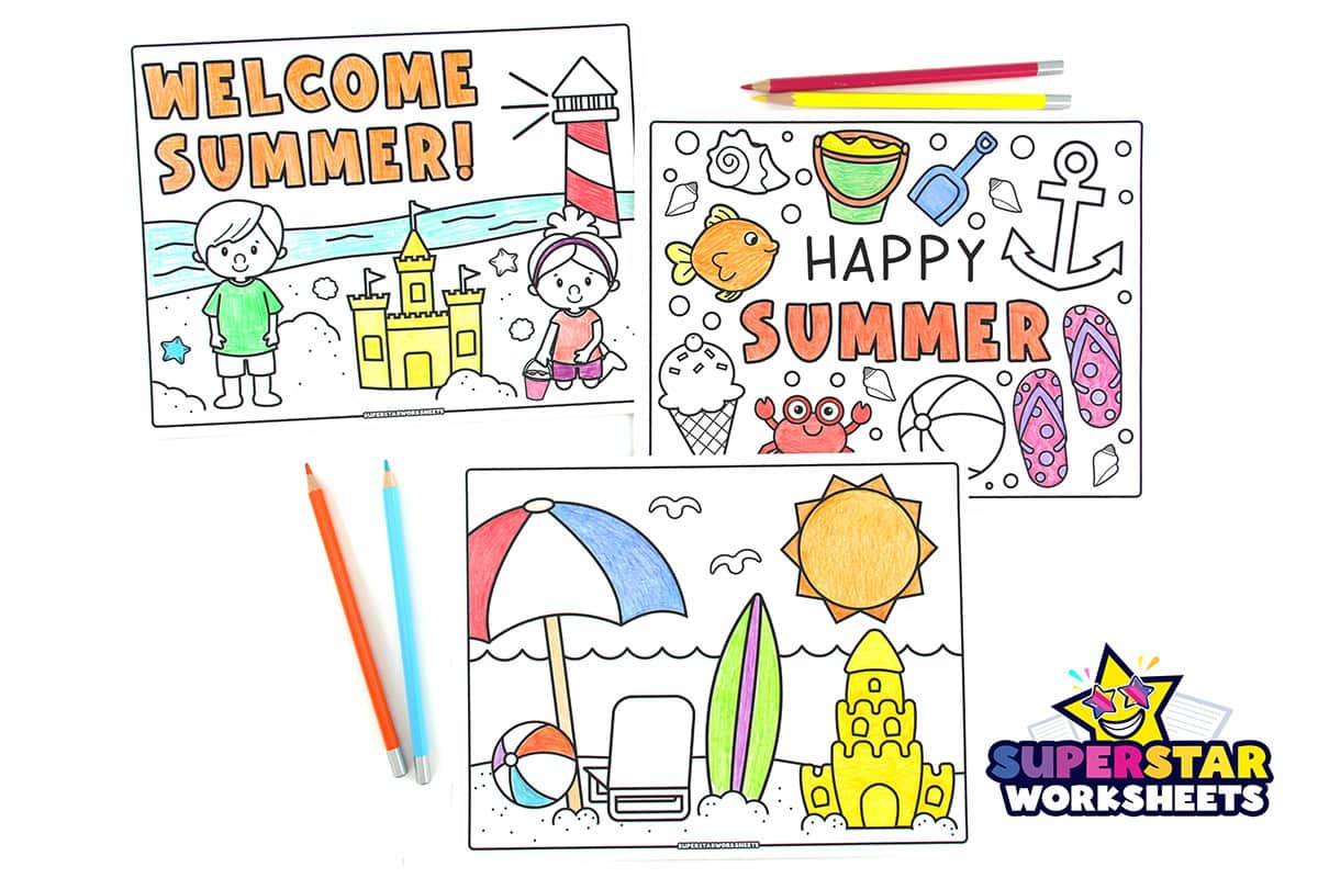 Free printable Summer Coloring Pages are the perfect way to keep children engaged during the warmest months of the year! These summer coloring pages provide activities that celebrate sunshine, beach adventures, and outdoor fun. Your preschool and kindergarten students can use these coloring pages for summer activities and they are simple to download and print!