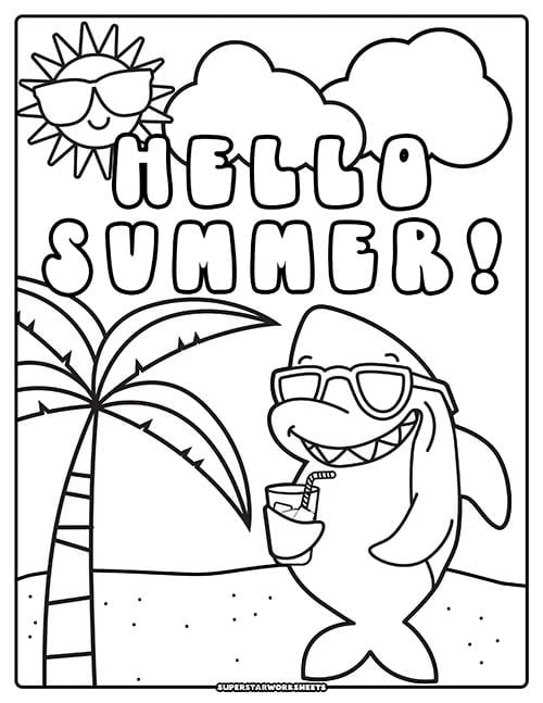 Here is an adorable shark coloring page with large bubble words saying “Hello Summer”. Your students will love coloring this free summer coloring page during class or at home during summer break. Need more summer printables? Try our FREE Summer Worksheets!