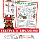 These easy free printable Christmas crossword puzzles are perfect for preschool through first grade, covering simple Christmas vocabulary like Santa, reindeer, and holiday traditions. A wonderful no-prep activity for early finishers, morning work, or Christmas parties. Teachers! Print a class set in seconds, laminate for repeated use with dry-erase markers, or send home as a festive December homework assignment.