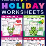 Free printable holiday worksheets for celebrating fun holidays and seasons with your students. Download and print free activity pages for common U.S. holidays. Each set features holiday math worksheets, reading comprehension activities, writing prompts, games, puzzles, and more! Perfect for classroom or homeschool settings, these festive PDF resources help children master important skills while celebrating seasonal traditions.