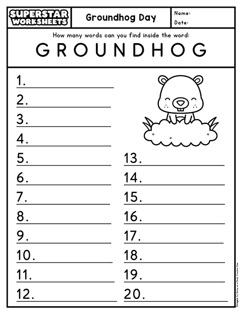Encourage your students to think outside the box to find words inside the word “GROUNDHOG.” This simple activity is great for spelling practice!