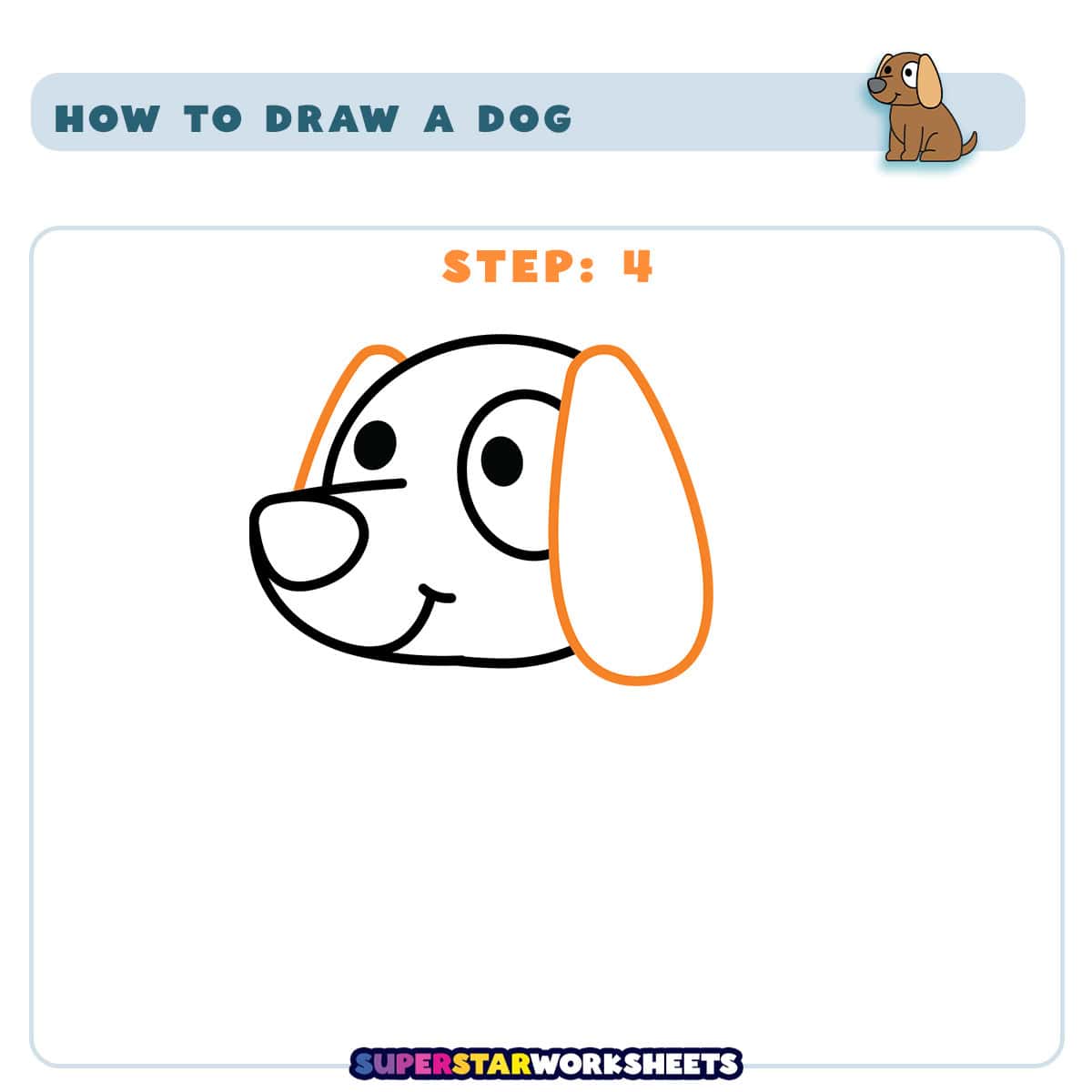 Now let’s add the other ear! Draw a matching floppy ear on the right side of the dog’s head. This gives your puppy a balanced, symmetrical look. You can make the ears slightly different shapes if you want to add some personality to your dog!