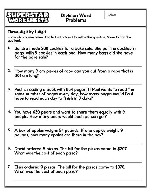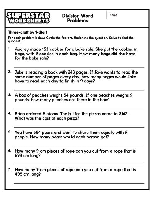 These division word problems give students practice with 3 digits divided by 1 digit.