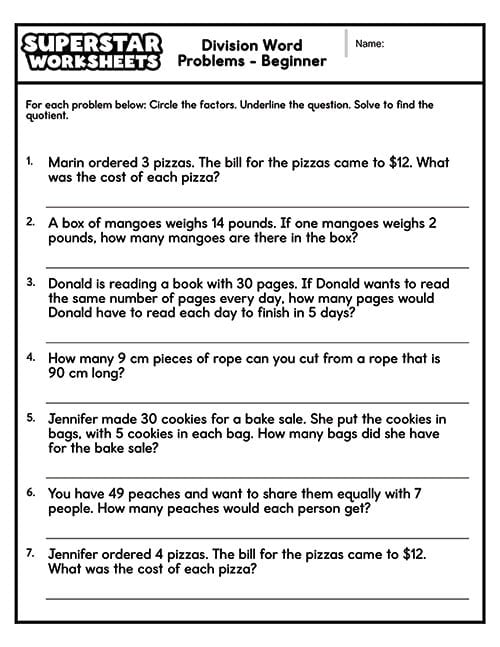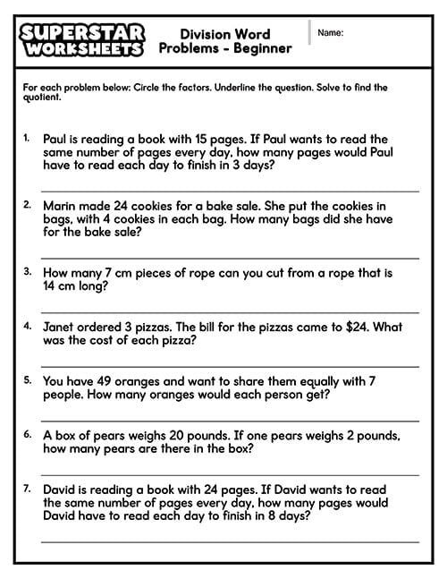 Free Printable Division Word Problems