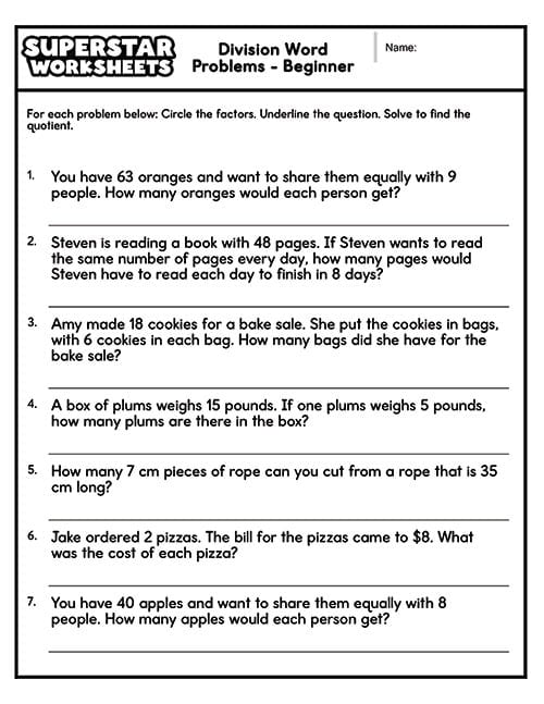 Division Word Problems Worksheets