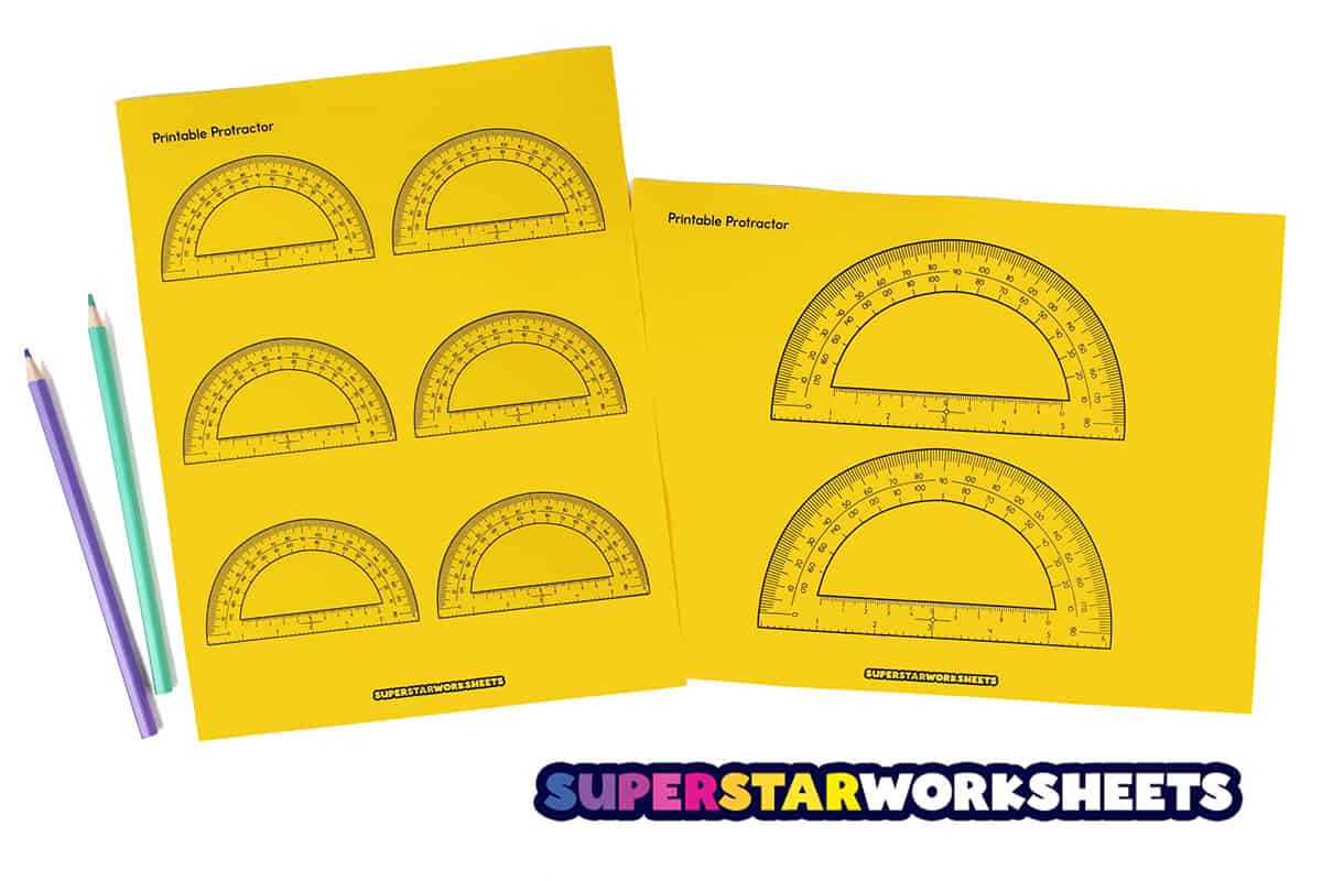 These printable protractors include practice worksheets where students measure and draw angles at various degrees using their protractor printable tools. Teachers! You can use these protractor printable free resources for independent practice, math centers, or assessments to reinforce angle measurement skills.