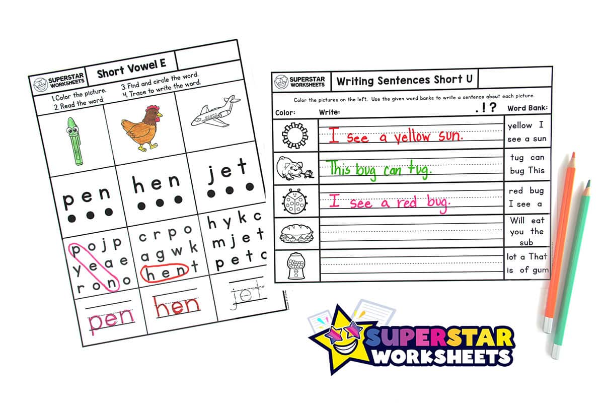 Kindergarten phonics worksheets give students a fun way to practice CVC words!