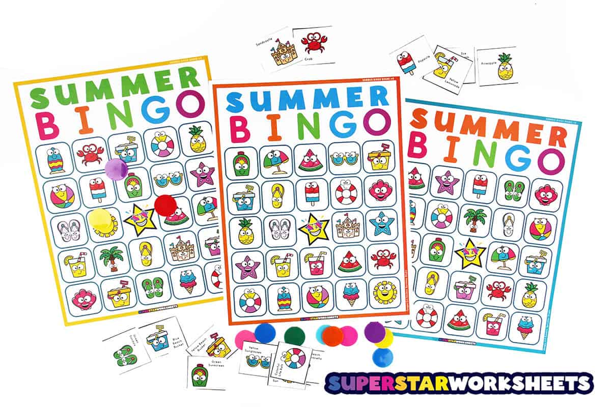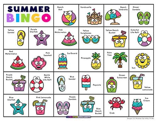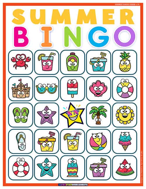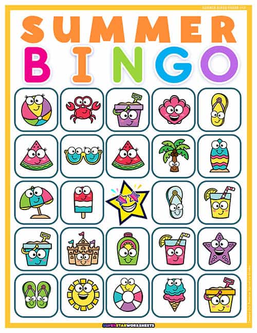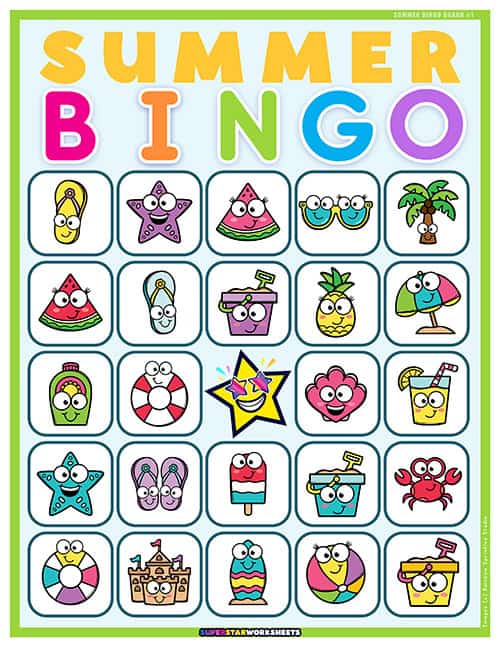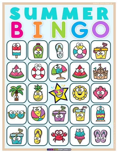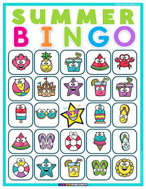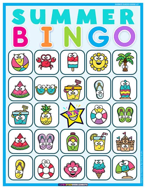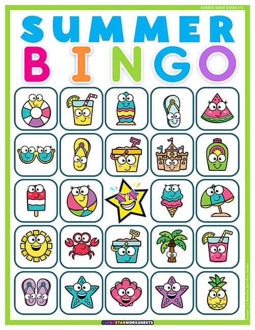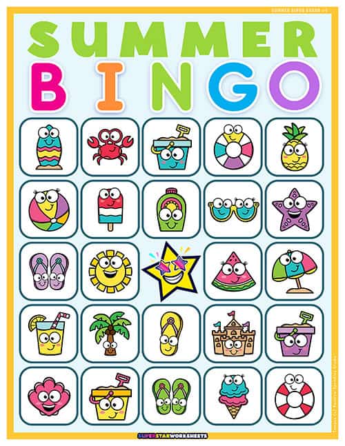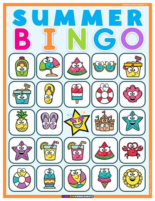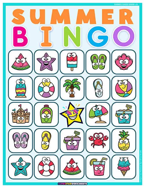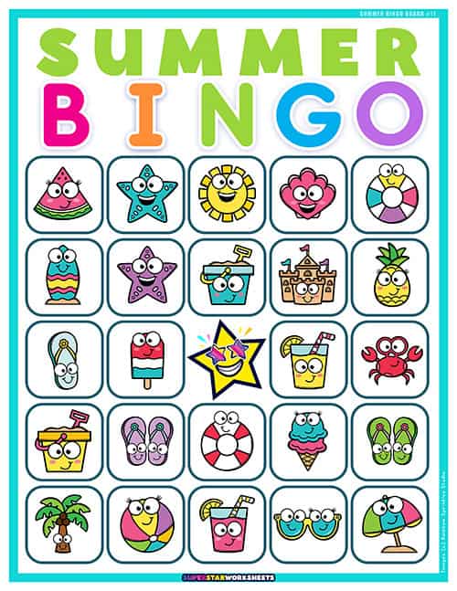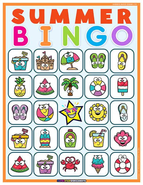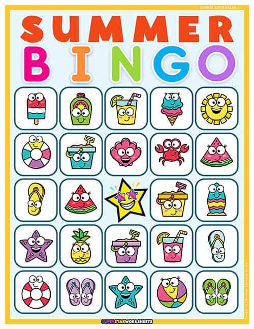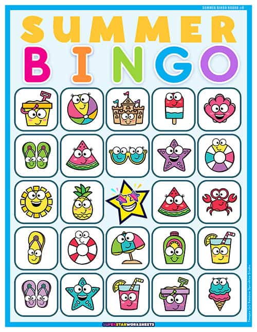 Looking for summer bingo ideas for your classroom party or playdate? Hand each kid a different board, call out the icons randomly, and offer small prizes like pencils or stickers to keep everyone motivated to play multiple rounds.