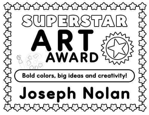 Superstar Award Art Certificate