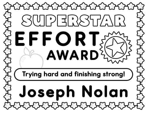 This black and white version of our printable awards is perfect for budget-conscious classrooms and homeschools looking to save on ink costs.