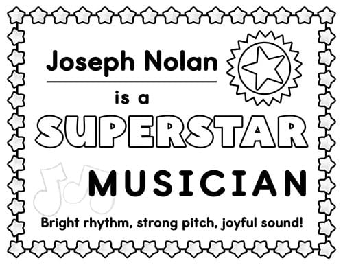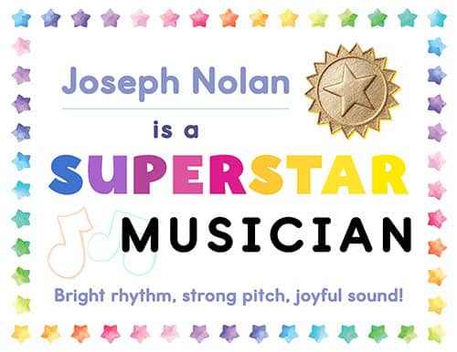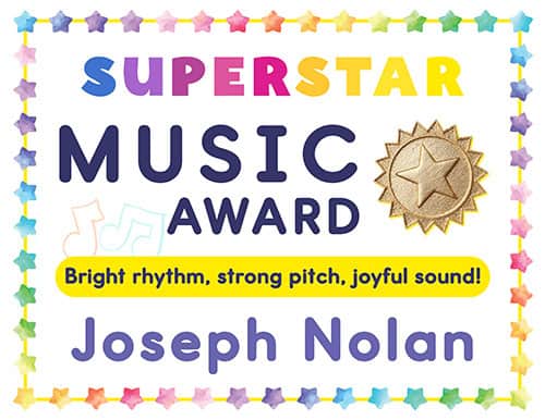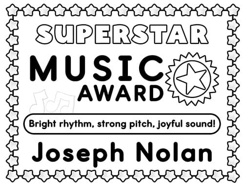 These printable awards celebrate students who bring bright rhythm, strong pitch, and joyful sound to their music performances!