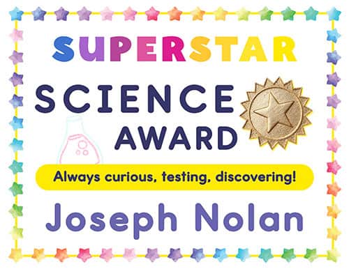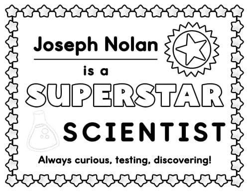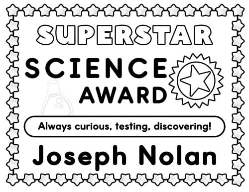 These printable award certificates recognize students who are always curious, testing, and discovering in science class.