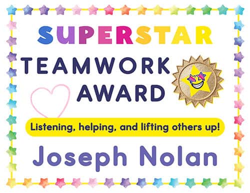 Celebrate collaboration skills with these printable awards that honor students who excel at listening, helping, and lifting others up. Need more free printable signs? Check out our First Day of Kindergartener Signs!