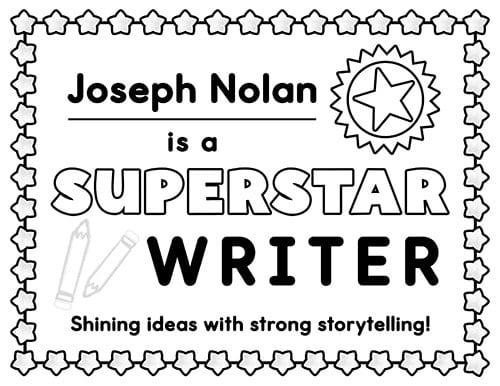 Recognize outstanding writers with these printable award certificates that celebrate students who shine with strong storytelling and creative ideas.
