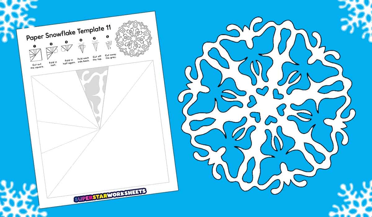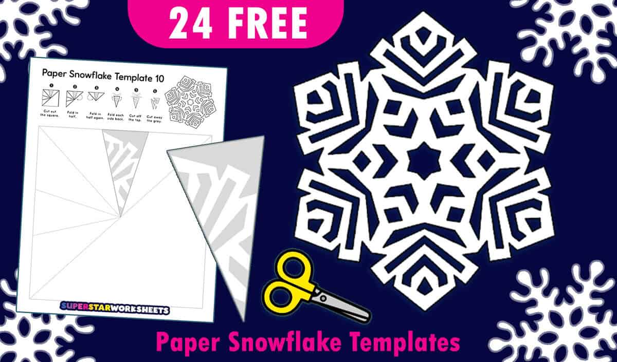 24 free printable paper snowflake templates for kids to cut out! Download our PDF paper snowflake patterns featuring easy cut out guides for students of all ages. Print step-by-step cut and fold instructions alongside the templates to make everything from simple and easy snowflake patterns to a variety of fun patterns and styles like snowmen, Christmas trees, stars, and more.