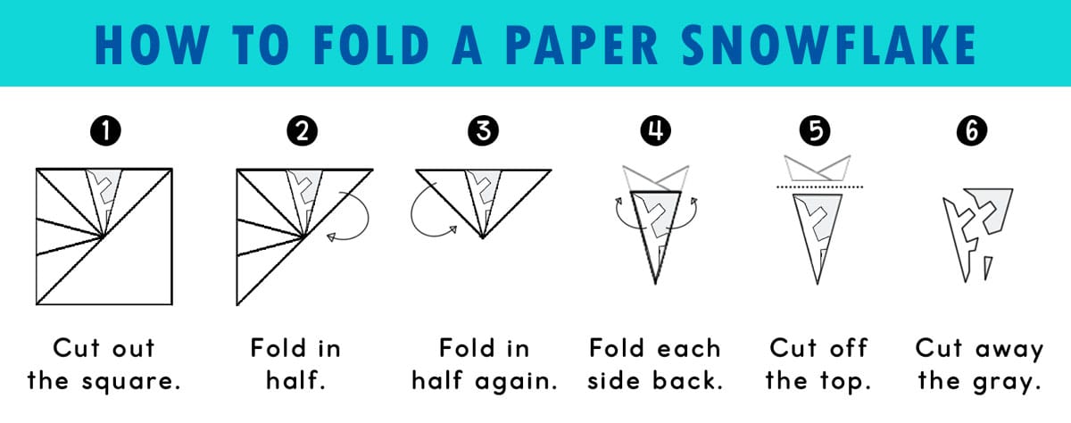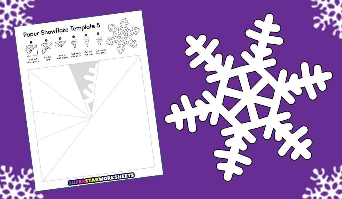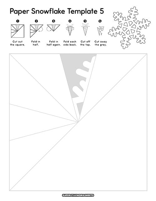Free PDF paper snowflake template for kids to cut out! This easy pattern snowflake features six simple steps for folding and cutting to create a beautiful six-sided snowflake. Follow the simple folding and cutting instructions provided and students will have a delicate design when complete.