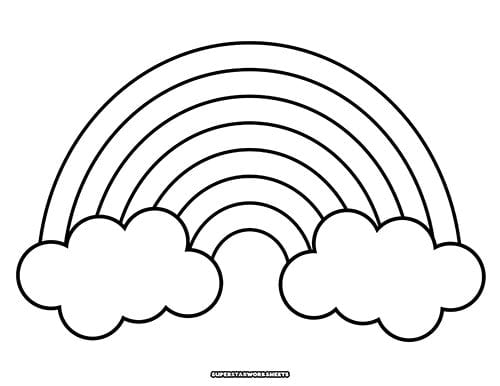 Download and print this simple rainbow with clouds template featuring room to add the 7 colors of the rainbow. Perfect for preschool and kindergarten crafts, coloring, and fine motor activities.