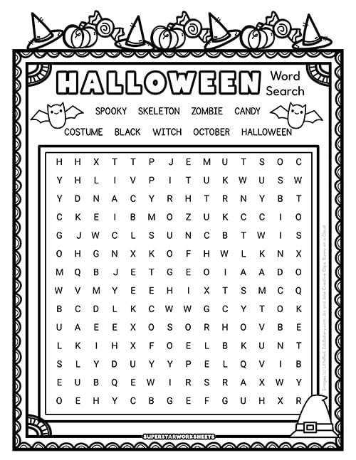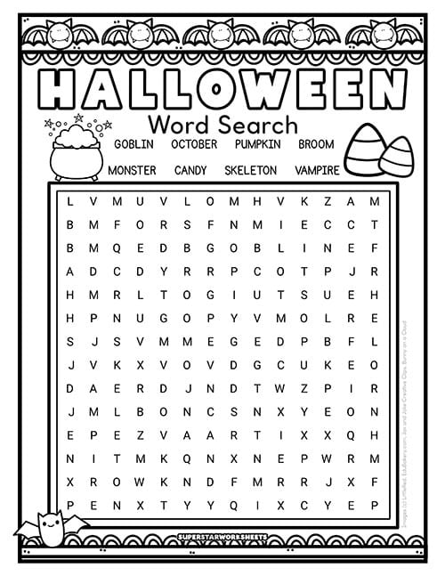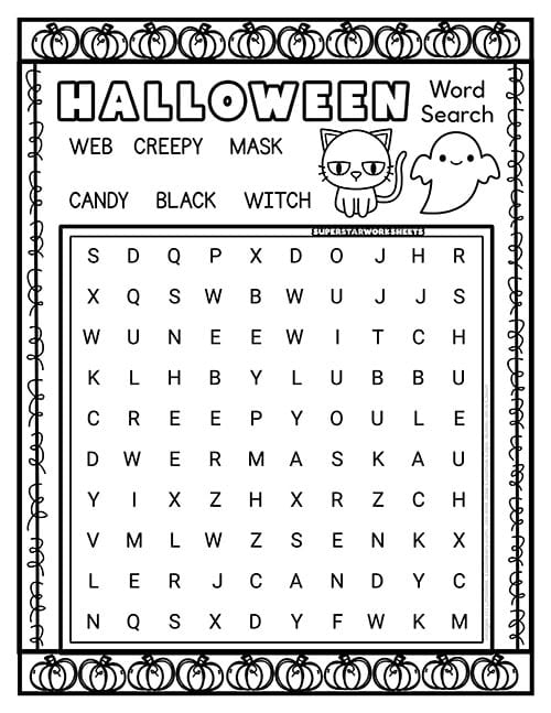 The Halloween word search printable with decorative fall borders and pumpkins gives you a ready-to-go activity for substitute teacher folders or October classroom parties without any prep work.
