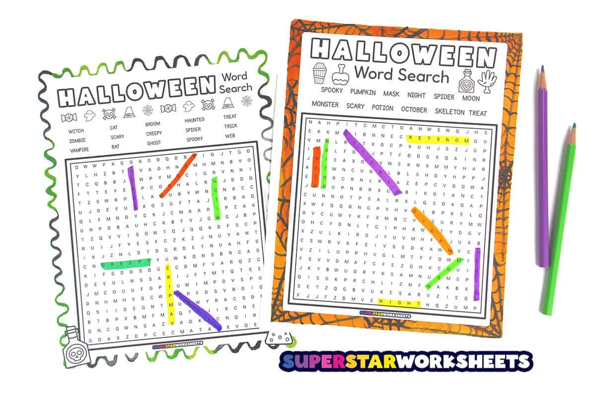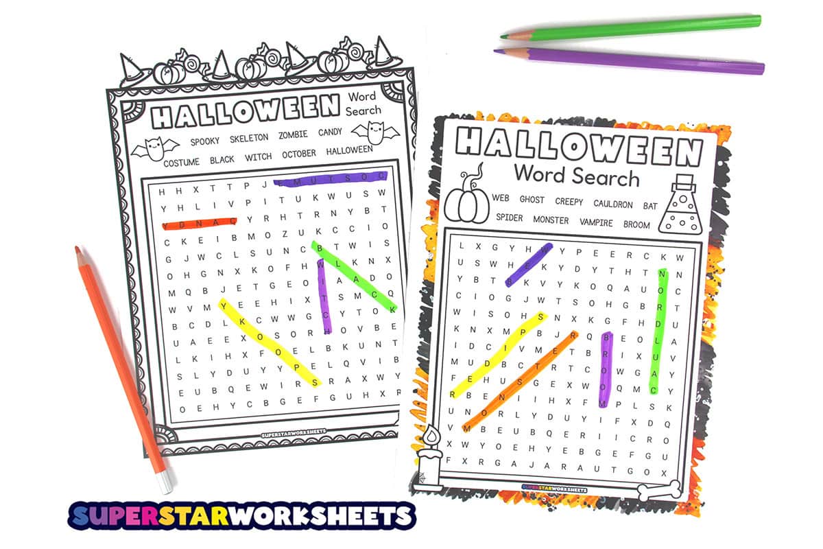 Print these Halloween word searches to print options for kids who need a break from standard worksheets! For more FREE printable Halloween activities, check out our Halloween Worksheets.