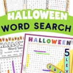 These free printable Halloween word searches fit perfectly in your emergency sub plans. Just print a stack in September and you’ll have ready-to-go Halloween activities when you’re out sick or need something for indoor recess on rainy October days.