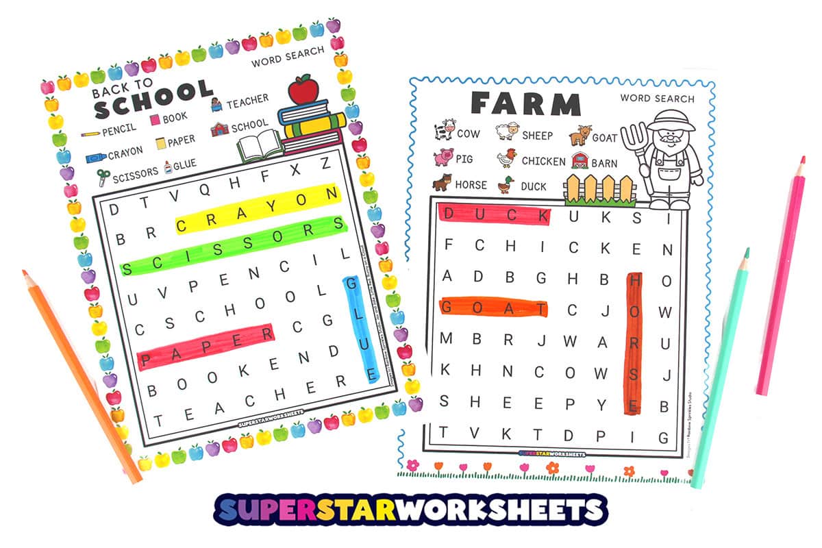 Free printable kindergarten word search puzzles perfect for young learners! Students will have a blast finding the answers to these word search for kindergarten activities. Featuring age-appropriate vocabulary words perfect for beginning readers, these printables are available in both color and black and white versions. Each PDF download below includes an answer key to make checking work quick and easy.